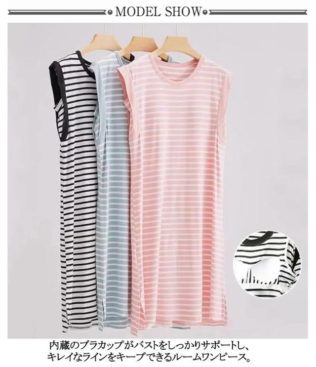 カップつきワンピース ロング ゆったり レディース カップ付き インナー カップ付ワンピース ノースリーブ カップ付きワンピース ロングワンピース ワンマイルウェア ルームワンピース 部屋着 ボーダー カップ付きワンピース Tシャツワンピース リラックスウェア