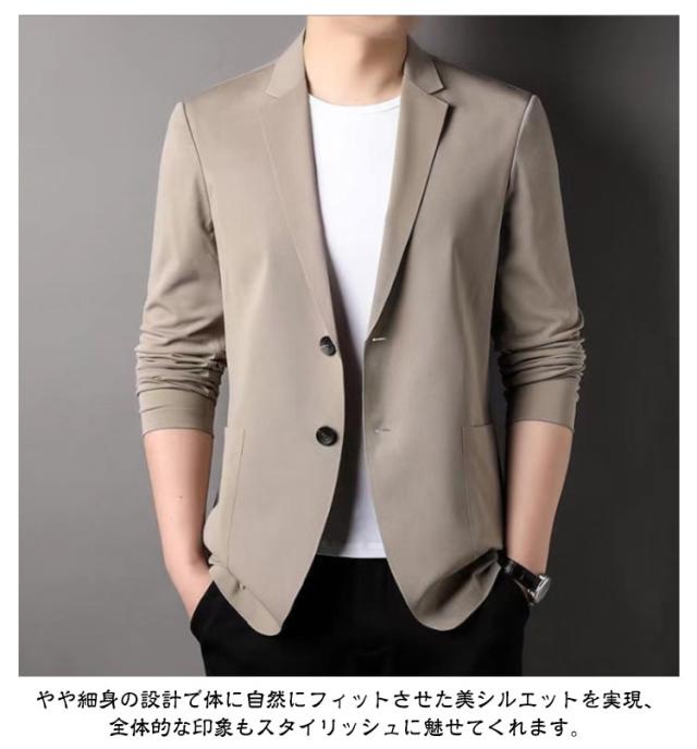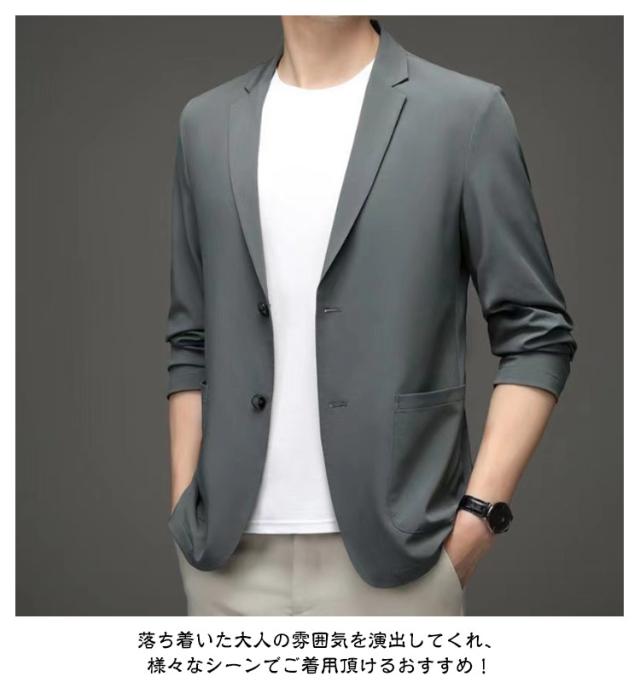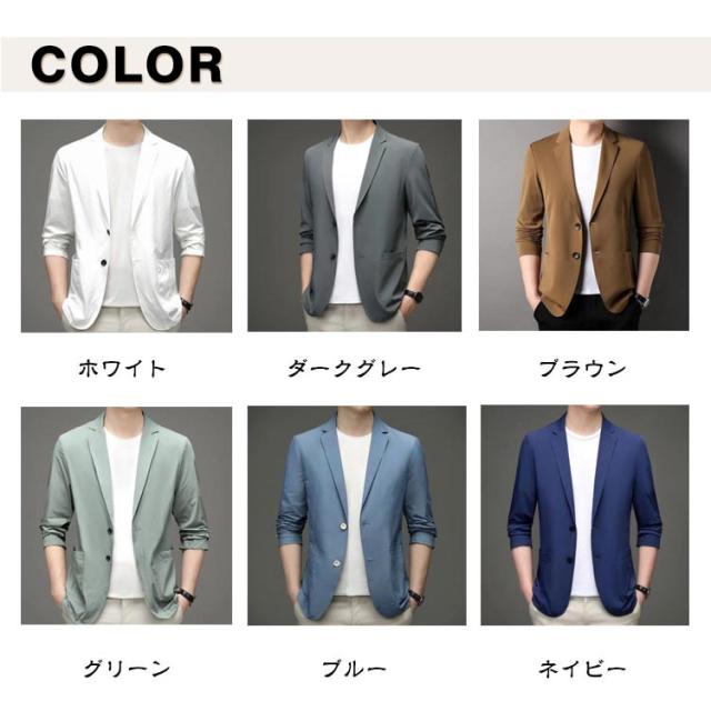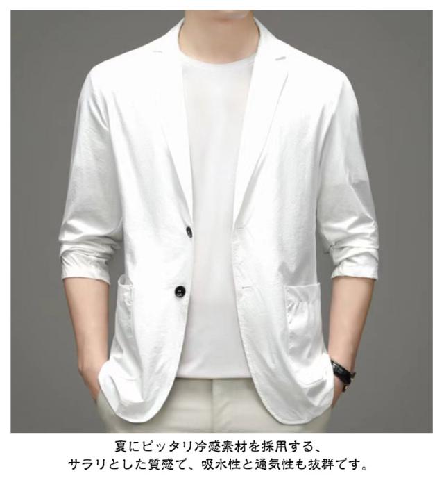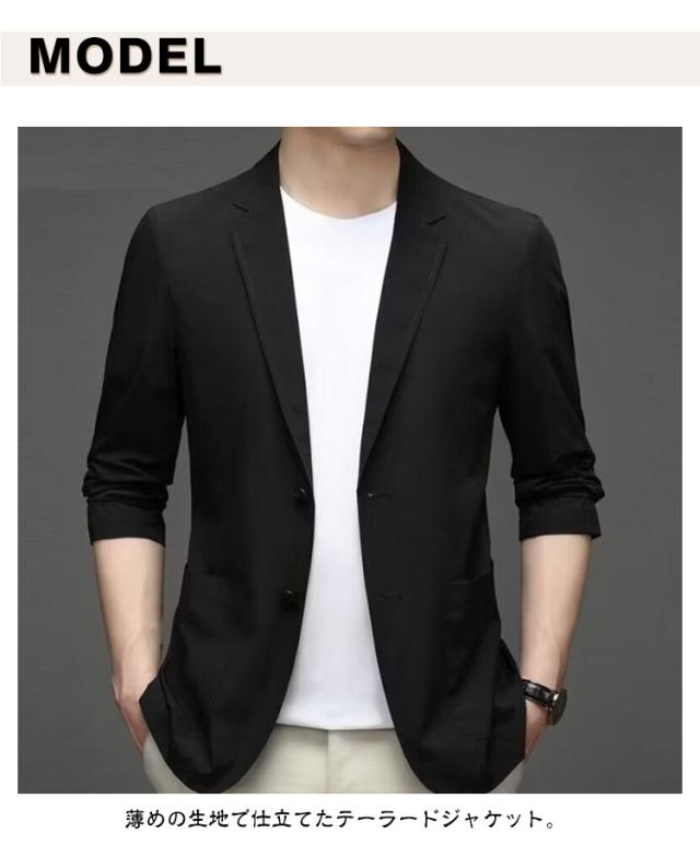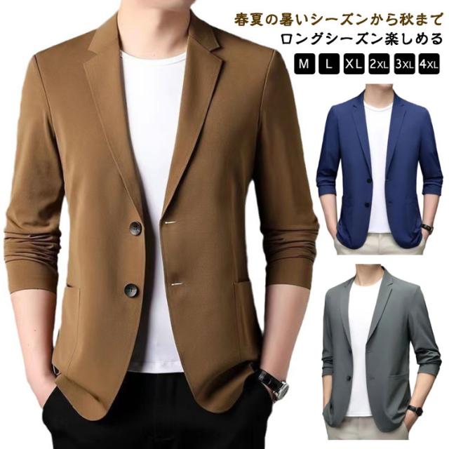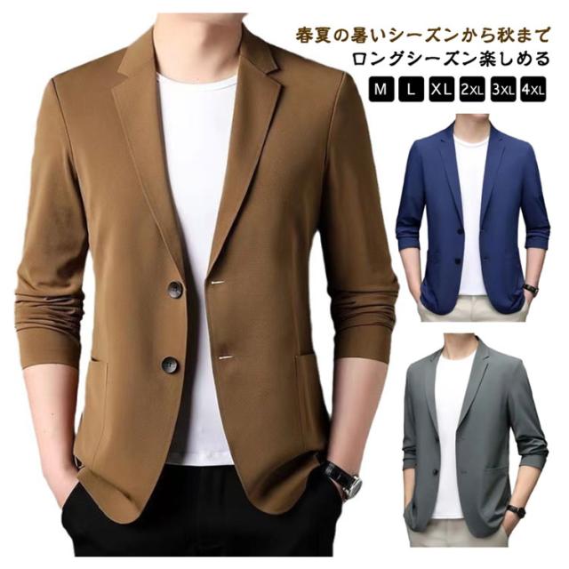 | M-4XL!春夏の暑いシーズンから秋までロングシーズン楽しめる。薄めの生地で仕立てたテーラードジャケット。 やや細身の設計で体に自然にフィットさせた美シルエットを実現、全体的な印象もスタイリッシュに魅せてくれます。 夏にピッタリ冷感素材を採用する、サラリとした質感で、吸水性と通気性も抜群です。 落ち着いた大人の雰囲気を演出してくれ、様々なシーンでご着用頂けるおすすめ! | |