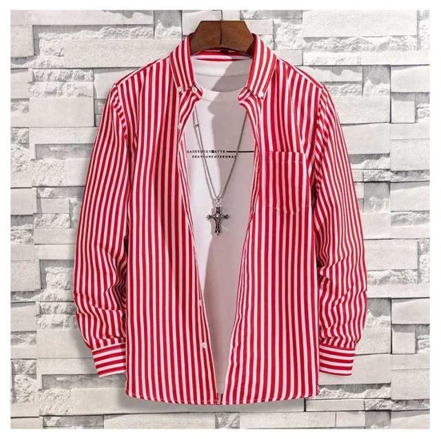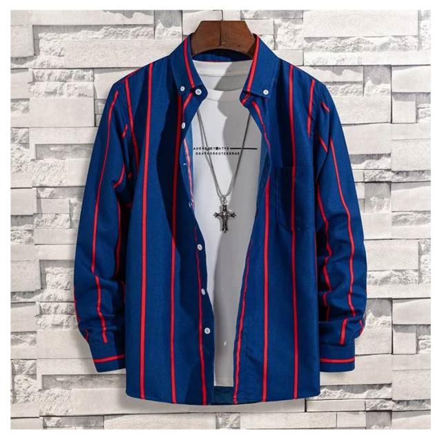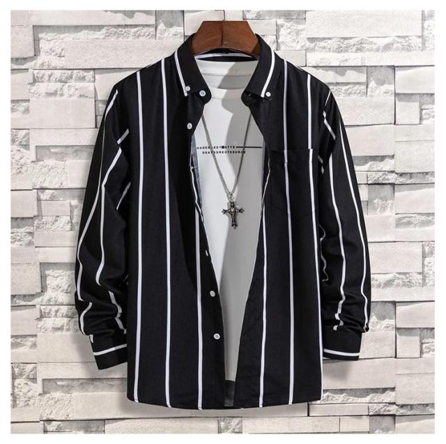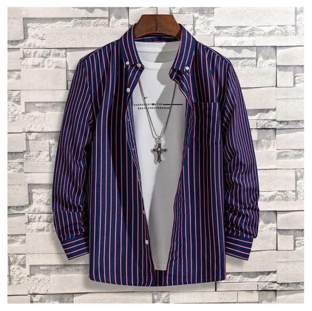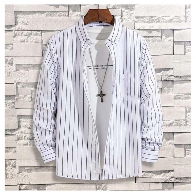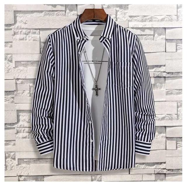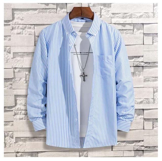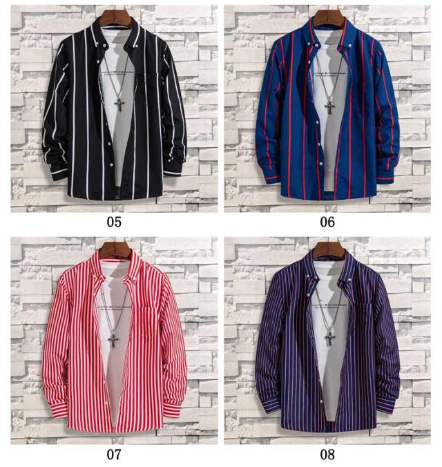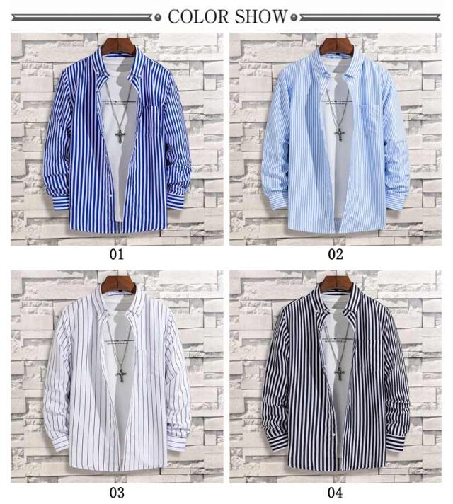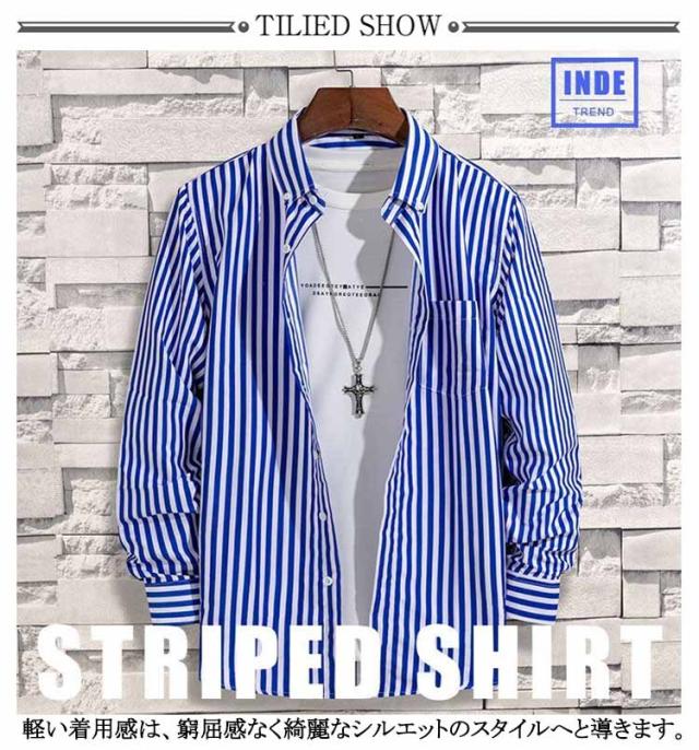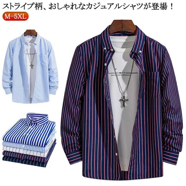 L ストライプシャツ カジュアルシャツ お洒落 トップス メンズ 長袖 ビジネスシャツ 前開き 春秋 お兄系 メンズ 大人 ビジネス 大きいサイズ M カジュアル XL 2XL 3XL 4XL 5XL