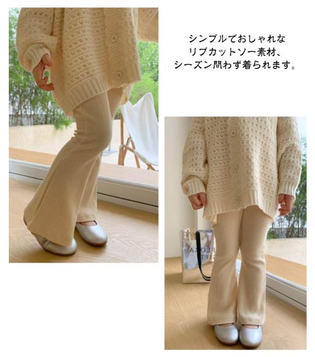 薄手 リブ素材 ストレッチ ニット 子供 キッズ 女の子 ボトムス リブフレアパンツ 夏 フレアパンツ 伸縮性 リブパンツ 2枚セット 90 パンツ ベビー 春 ジュニア 長ズボン 無地 韓国ファッション ブーツカット カジュアル 80 秋 100 110 120 130 140
