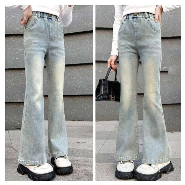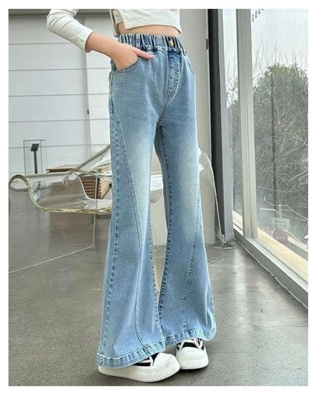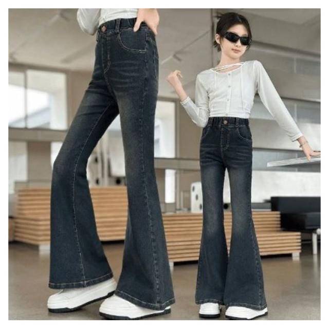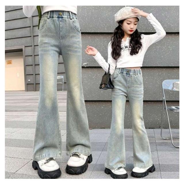 ジュニア 衣装 デニムパンツ キッズ ジーンズ 春服 小学生 服 フレアパンツ ジーパン 長ズボン ロングパンツ 女の子 中学生 ウエストゴム 秋服 韓国 送料無料 ダンス ファッション 送料無料 ボトムス おしゃれ ブーツカット 120 130 140 150 160