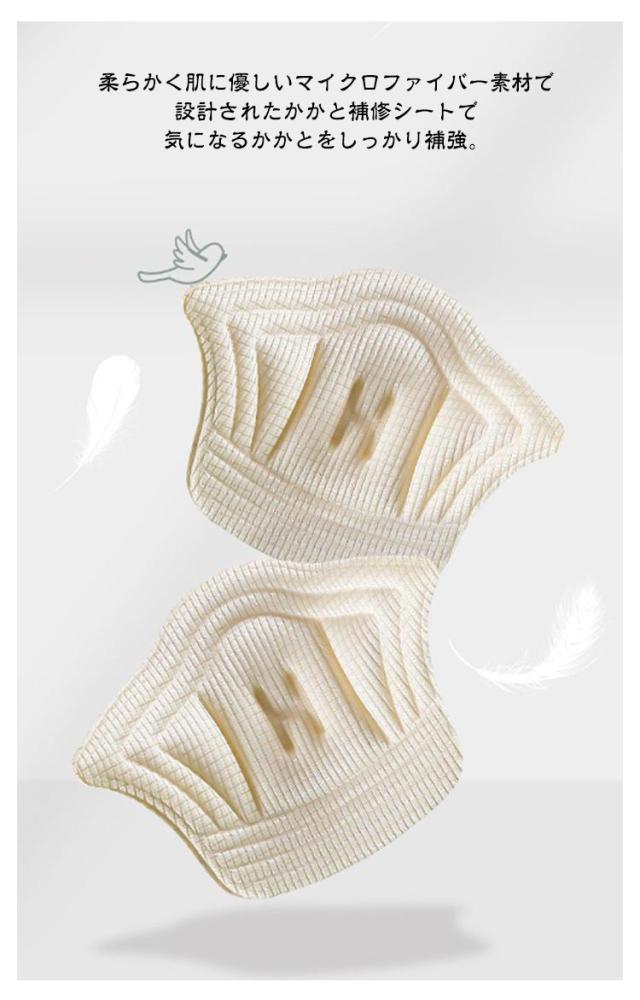 | 自由にカット可能! かかと補修シート。 厚み選べる 擦り切れや穴を隠してカバー、靴サイズが大きすぎる場合の補助パッドとしてもOK! 柔らかく肌に優しいマイクロファイバー素材で設計されたかかと補修シートで気になるかかとをしっかり補強。 裏面の台紙をはがしてかかとの内側に貼り付けるだけ。 かかとの高さや形状に合わせて自由にカットできます。 厚みのあるデザインなので、運動中に減圧効果とクッション効果があり、かかとをしっかり保護します。 男女兼用タイプで、お家に常備することをおすすめします。 | |