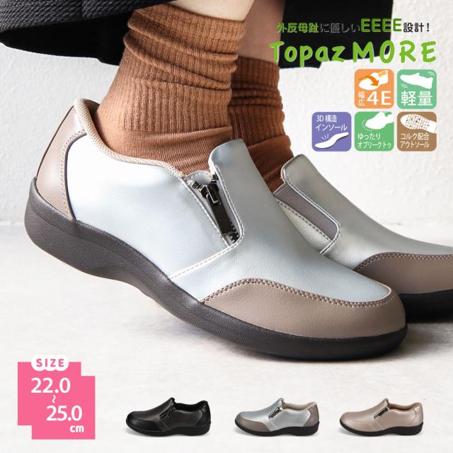 topaz 靴 レディース トパーズ モア コンフォートシューズ レディース おしゃれ 幅広 4e ウォーキングシューズ レディース 軽量 防滑 スリッポン ファスナー シューズ 黒 ブラック シルバー ピンク 母の日 敬老の日 1415