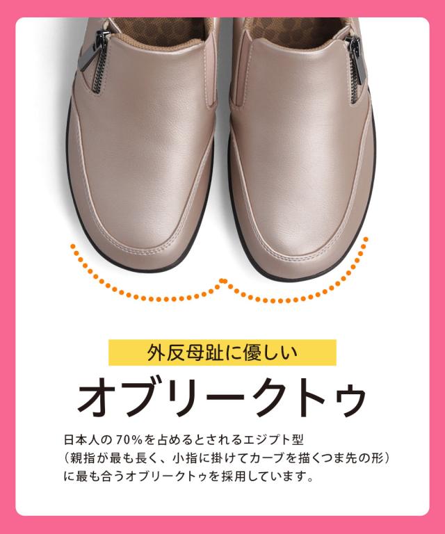 ■ゆったり4Eのオブリークラストを使用した、「トパーズ」のコンフォートシューズ。