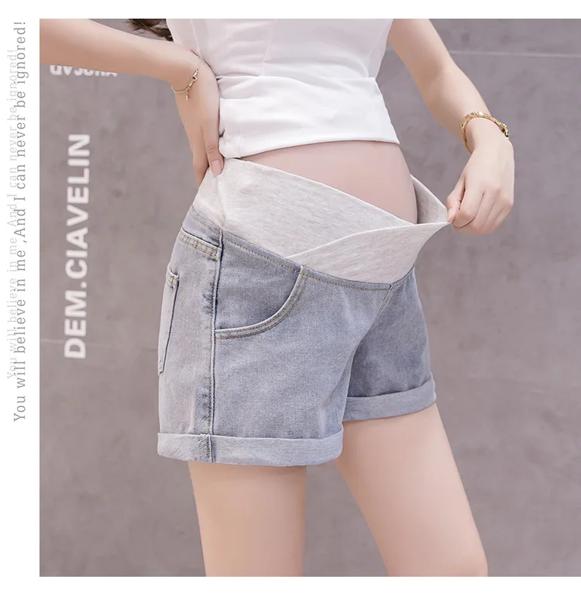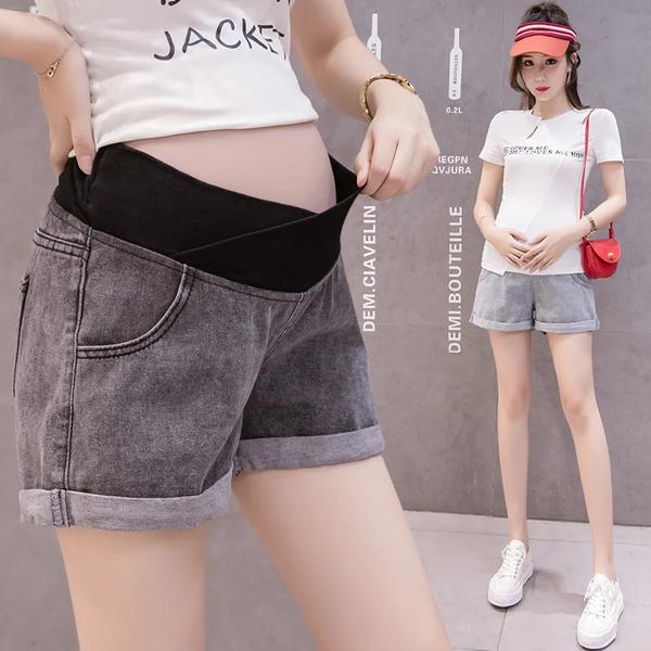 妊婦用デニムショーツ、コットン、ローウエストマタニティパンティー、ルーズパンツ、サマーショートパンツ