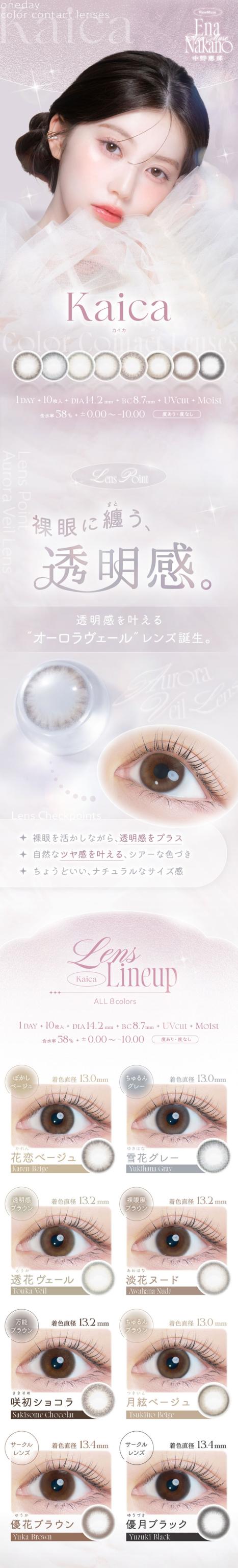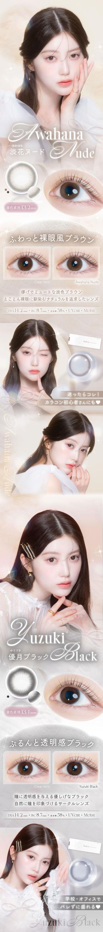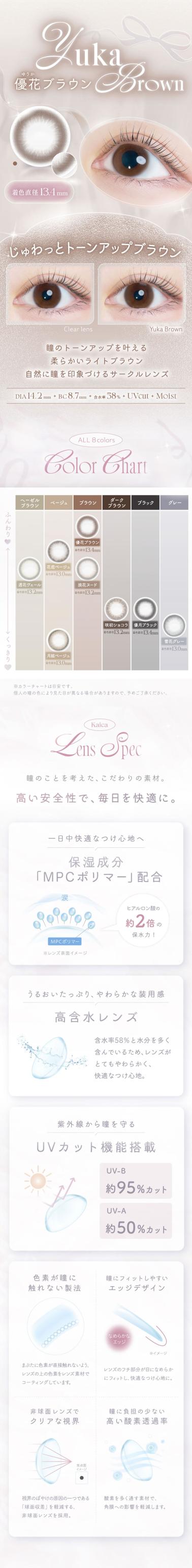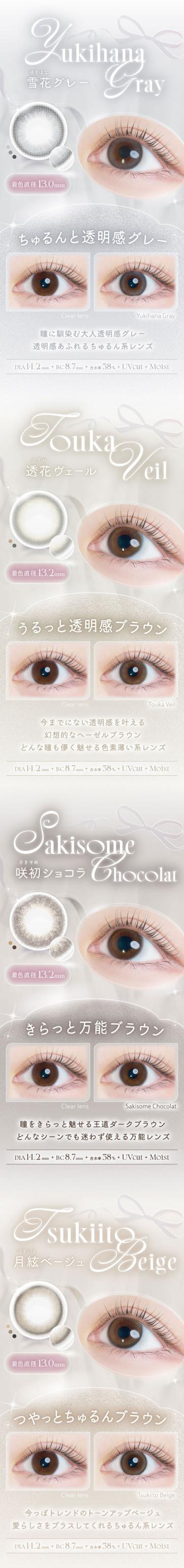 | 着色直径 | 13.0mm (月絃ベージュ) 13.2mm(透花ヴェール/淡花ヌード/咲初ショコラ) 13.4mm(優花ブラウン/優月ブラック) |
