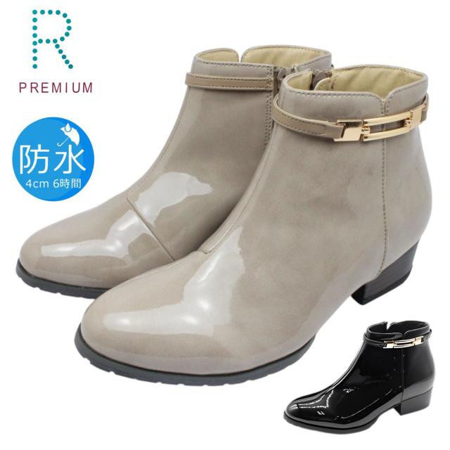 | レインブーツ レディース R-PREMIUM 3681 防水 ショート ブーツ 長靴 雨靴 ブーティ 軽量 おしゃれ 防滑 抗菌 防臭 ローヒール エナメル ファスナー アールプレミアム |