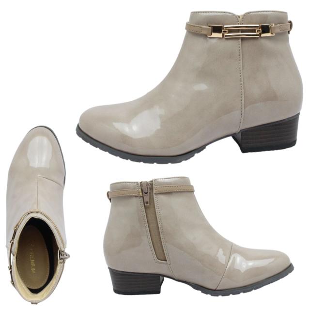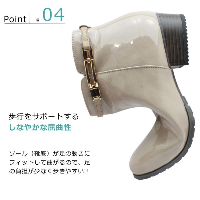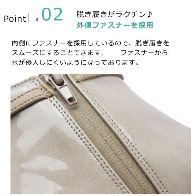 レインブーツ レディース R-PREMIUM 3681 防水 ショート ブーツ 長靴 雨靴 ブーティ 黒 ブラック ベージュ 雨 軽量 おしゃれ 防滑 抗菌 防臭 歩きやすい ローヒール エナメル きれいめ 通勤 通学 婦人靴 ジッパー ファスナー アールプレミアム