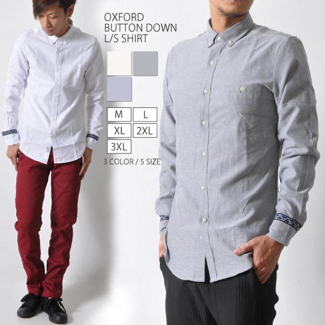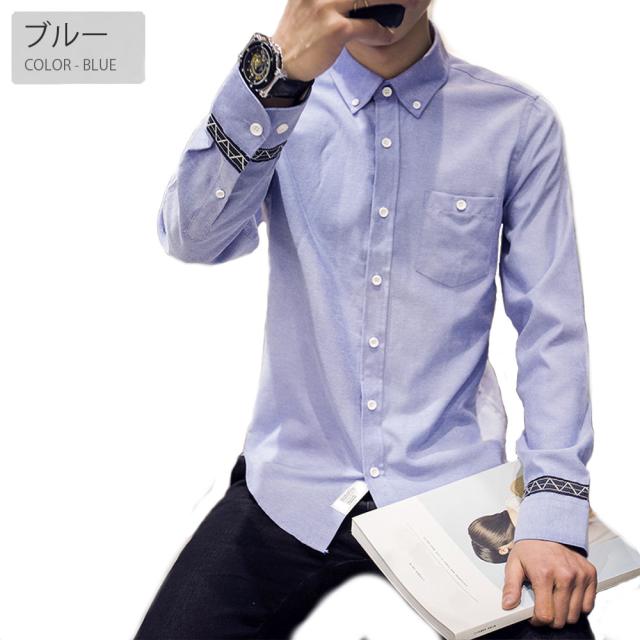 tsa 完売御免【送料無料】オックスフォード ボタンダウンシャツ ワンポイント トップス 長袖 シャツ メンズ #TS384c1 M便 BL