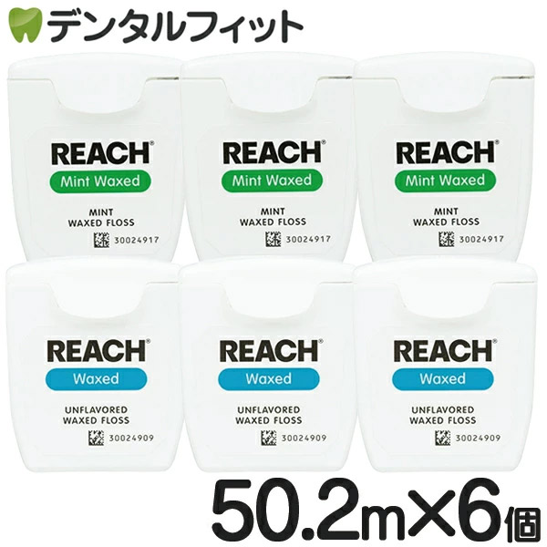 【メール便選択で送料無料】REACH リーチ/デンタルフロス 55ヤード(50.2m)ミントワックス3個 + ワックス・ノンフレーバー3個 合計6個セット