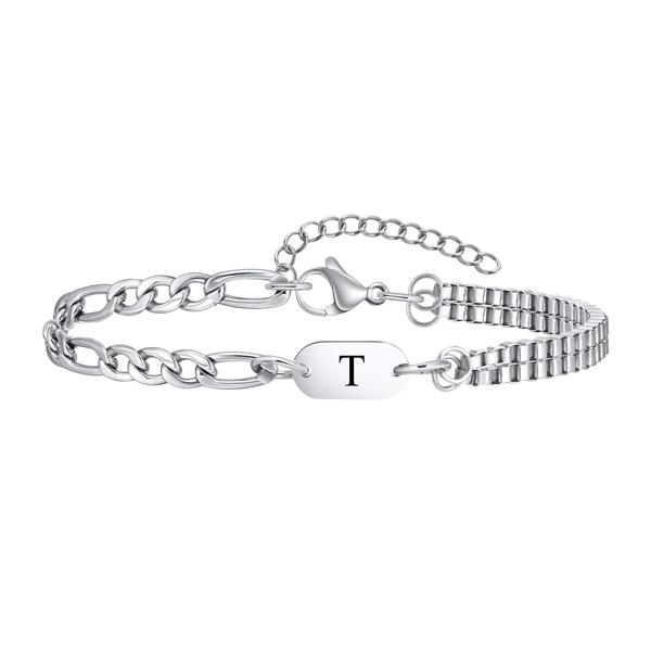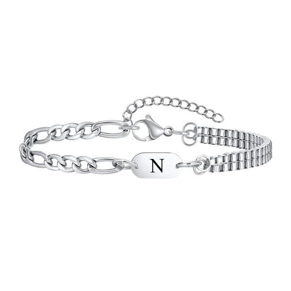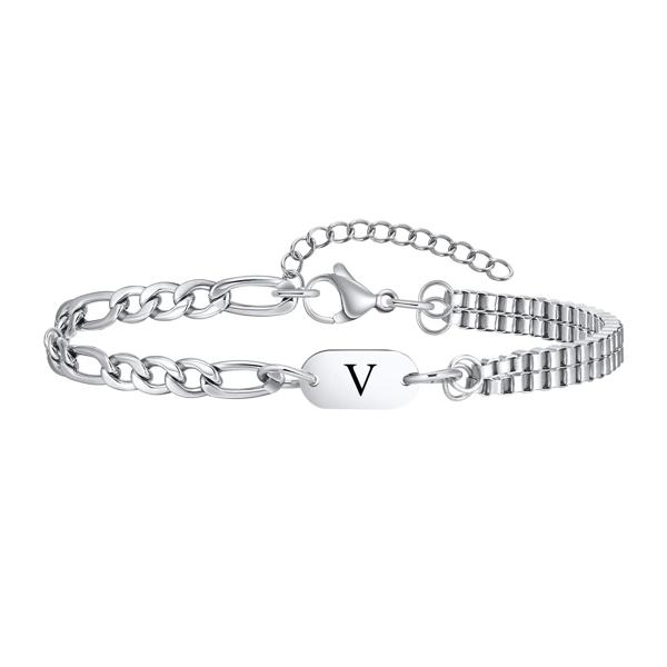 Vnox-A-Z男性と女性のための初期ブレスレット、フェードフィガロチェーン、二層、ボックスリンク、彼への名前ギフト