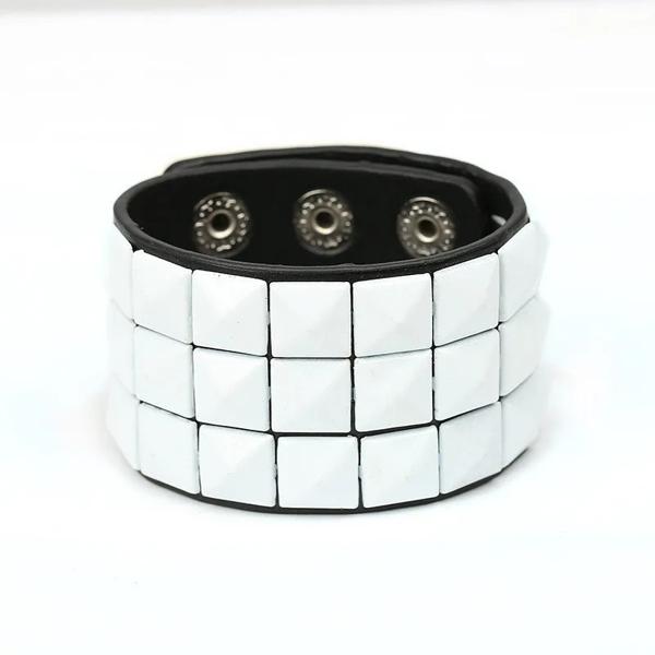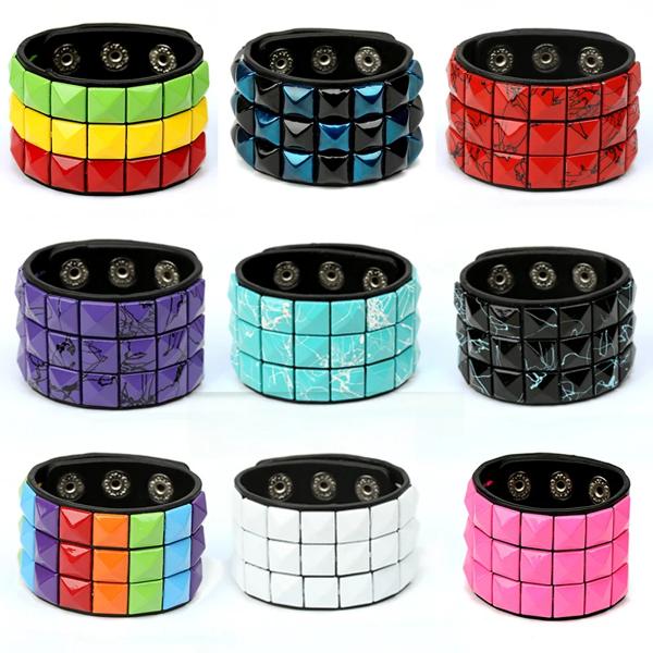 カラフルなパンクレザースクエアブレスレットユニセックスブラックカフリストバンドジュエリー男性女性用