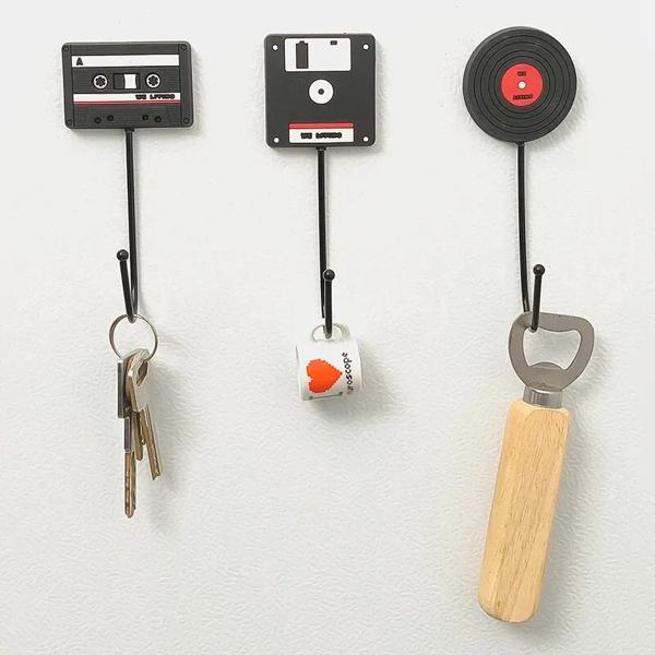 ヘッドセット用レトロドアフック、レコード/テープ/ディスクスタイルネイルフリー補助収納フックハンガー、オフィスキュービクル、書斎、eスポーツルーム用