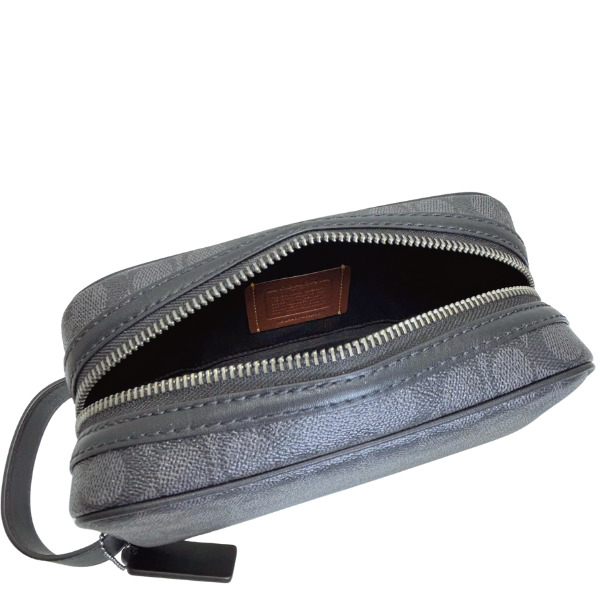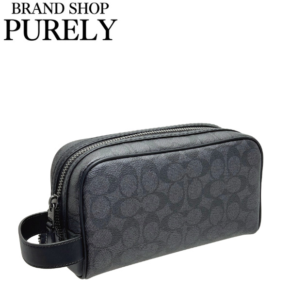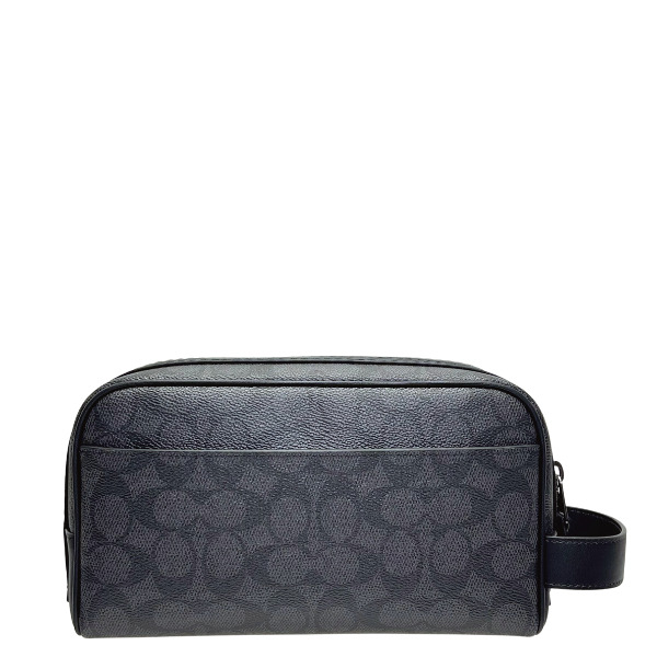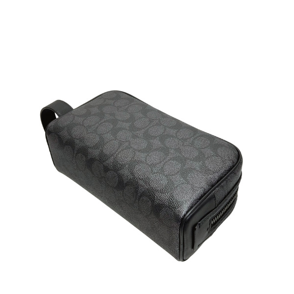 コーチ ポーチ メンズ COACH セカンドバッグ シグネチャー スモール トラベルキット CAR15 QBMI5 チャコール×ブラック