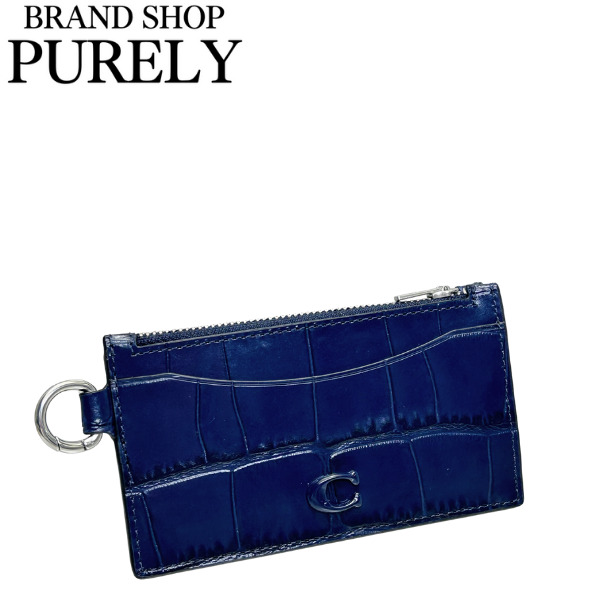 コーチ カードケース メンズ レディース COACH クロコダイル エンボスド レザー ジップ カードケース CW433 DNA ダークネイビー