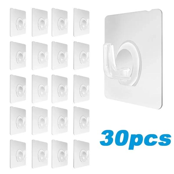 30 個の壁フック透明強力な自己粘着キータオルドア壁ハンガーぶら下げキッチンバスルームアクセサリーフック