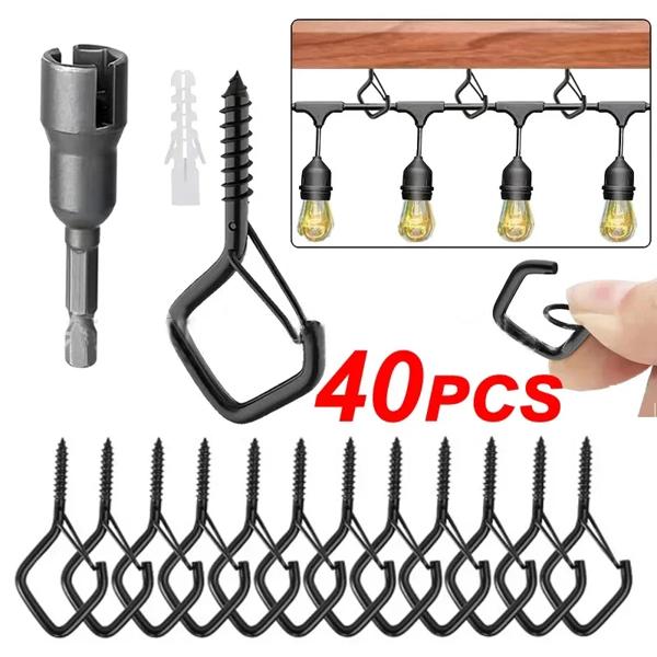 Q タイプ スプリングバックルフック付き シープアイネイルフック クエスチョンマーク型 落下防止ライトフック ネジ盆栽フック スリーブ付き