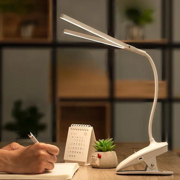 LED 双頭読書ブックランプ クリップタッチコントロール付き 調光可能なライト 目の保護 携帯電話ホルダー LED デスクライト