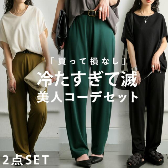 着るだけで整う。「CODEセット」1000円OFF コーデセット 半袖トップス パンツ レディース 送料無料 ・メール便不可