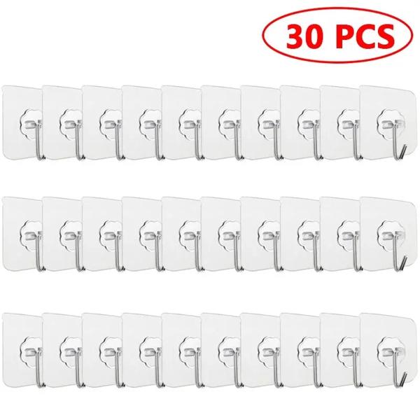 30 個フック透明強力な自己粘着ドア壁ハンガーフック吸引重荷重ラックカップ吸盤キッチン浴室用
