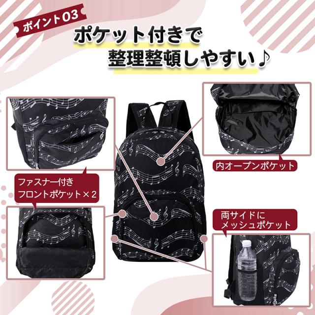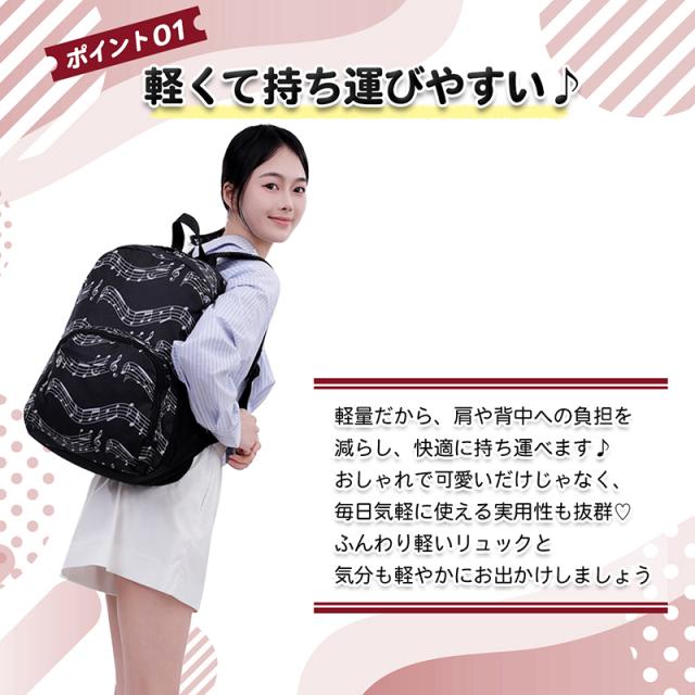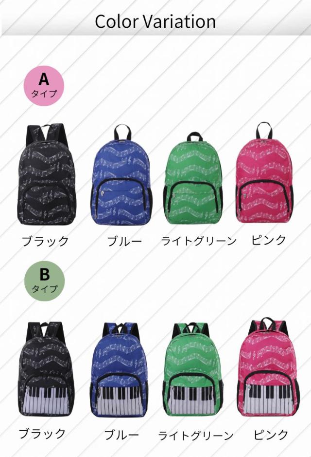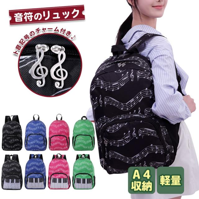 音符の リュック リュックサック 音楽モチーフ 鍵盤 リュックサック ト音記号 チャーム付き 軽量 かわいい A4サイズ対応 通学 普段使い 送料無料