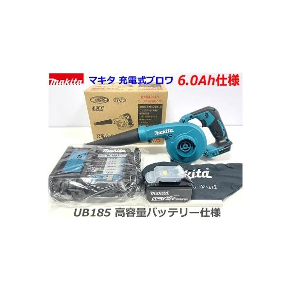 ★6.0Ah仕様■マキタ 18V 充電式ブロワ UB185DZ本体+バッテリー6.0AhBL1860B+充電器 (ノズル・集塵袋付き)