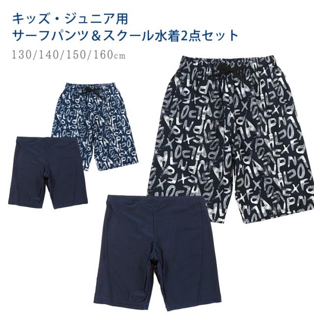 キッズ・ジュニア用サーフパンツ水着2点セット。