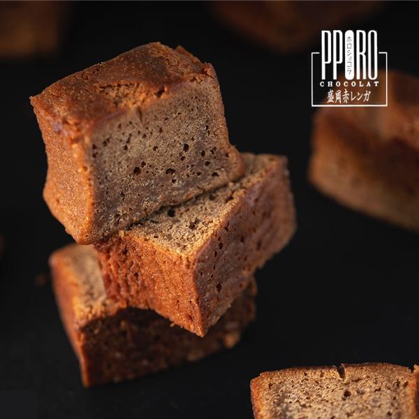 花月堂とラグノオの共同開発による赤レンガをイメージしたキャラメル味のチョコレートケーキです。