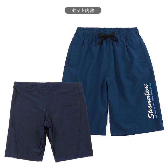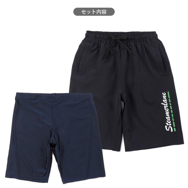 【メール便送料無料】サーフパンツ スクール水着 2点セット キッズ ジュニア 130 140 150 ブラック ネイビー 37251801 セットアップ スイムパンツ 男の子 男児 海水パンツ 海パン トランクス 短パン スク水 裏地付き スパッツ ポケット付き 無地 シンプル 黒 紺 sw3636