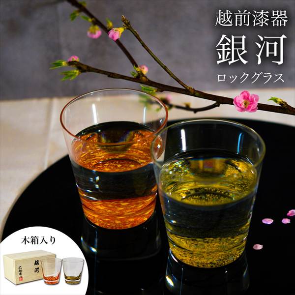 ロックグラス 銀河 ペア 木箱入り 蓋裏レーザー名入れ彫刻料込み ( 退職祝い 定年 焼酎カップ ビールカップ 漆塗り ロックカップ 人気 )