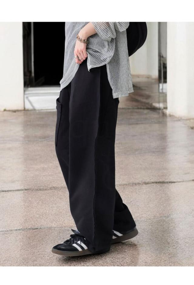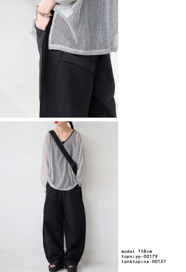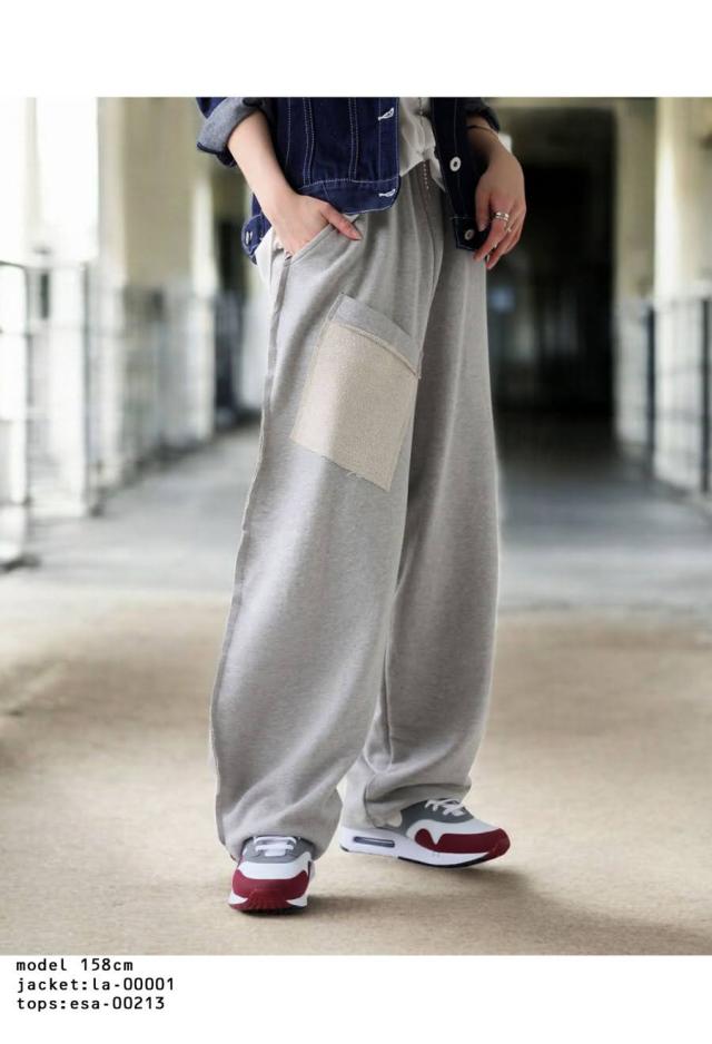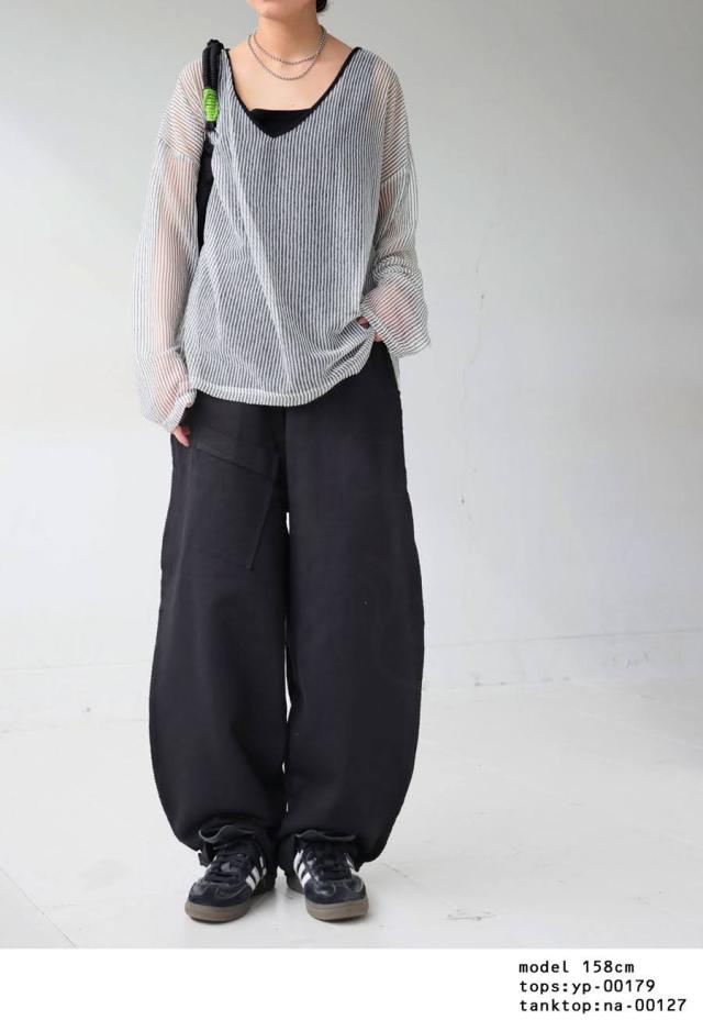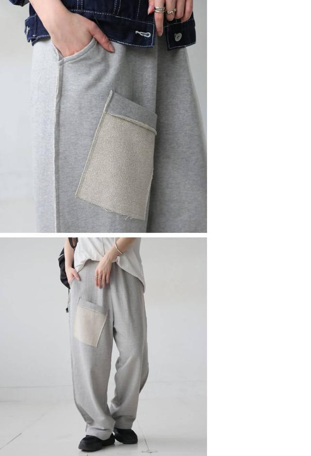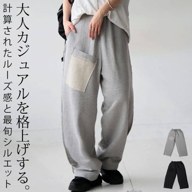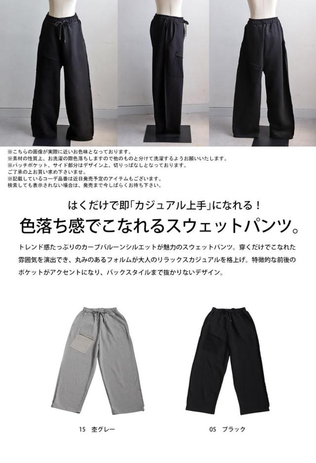 zj-00212 カーブパンツ バルーンシルエット リラクシー スウェット 紐 ポケットデザイン ブラック 杢グレー ゆったり シンプル スポーティ ナチュラル 体型カバー 着痩せ 大きめ