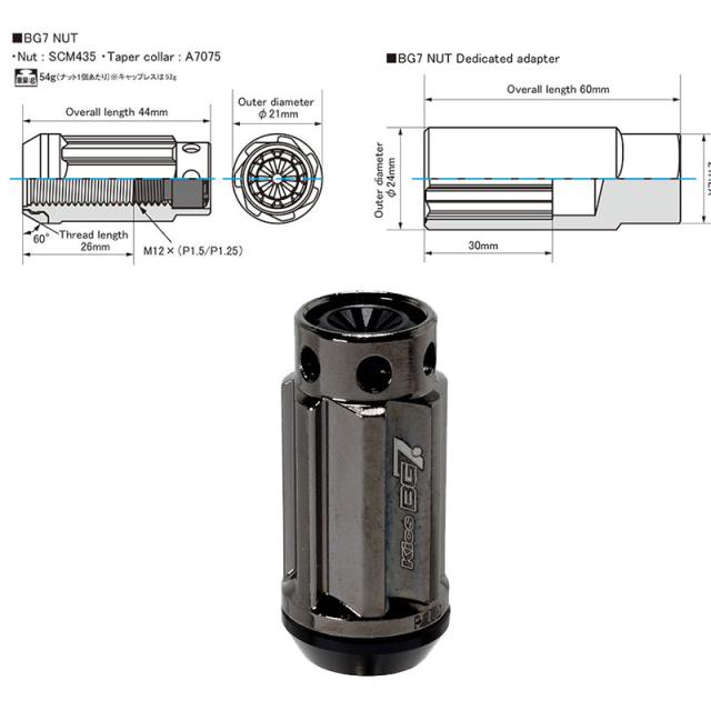 Kics BG7ナット 20個入 樹脂キャップ付 M12×P1.5 21HEX グロリアスブラック SCM435 クロモリ鋼構造 KYO-EI BG7F01