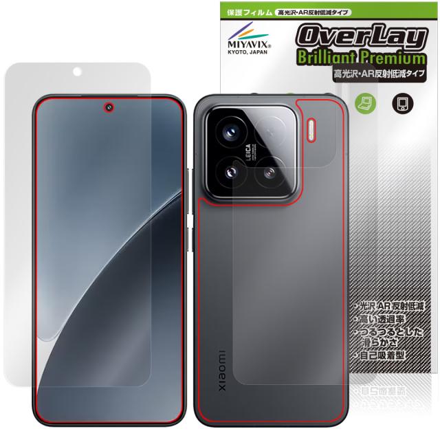 Xiaomi 15 表面 背面 フィルム OverLay 9H Brilliant Premium for シャオミー スマートフォン 高光沢 AR 反射低減
