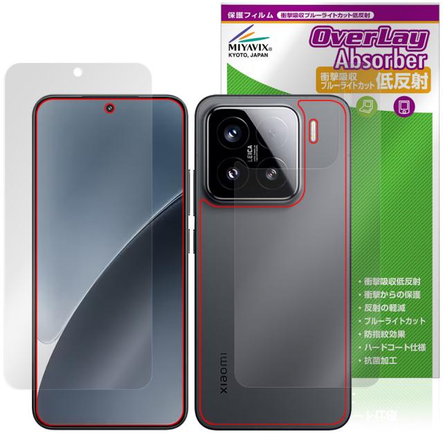 Xiaomi 15 表面 背面 フィルム OverLay Absorber 低反射 for シャオミー スマートフォン 衝撃吸収 反射防止 ブルーライトカット 抗菌
