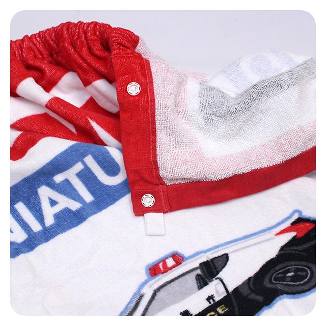 | 商品説明 | プールタオル 水泳タオル ビーチタオル スイミングタオル 着替えタオル ラップバスタオル 子供 水着 トミカ POLICE パトカー 白バイ 覆面パトカー プール(スイミング教室など)や海水浴での着替えに大活躍 スナップボタン付きバスタオルです 表地は肌触りの良いシャーリング加工 前面スナップ止めは3箇所 ゴムの入った上部はスナップボタンでサイズ調整が可能です 内側にネームタグ付き |