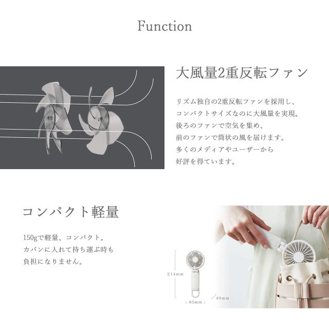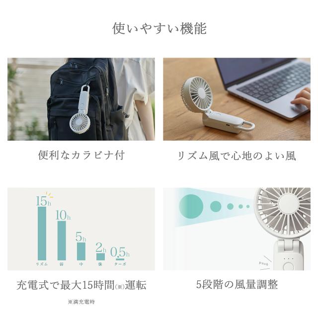 選べる4色 リズム ハンディファン 2025 扇風機 大風量 3way カラビナ付き 静音 卓上 小型 Silky Wind Mobile 3.2 9ZF040RH