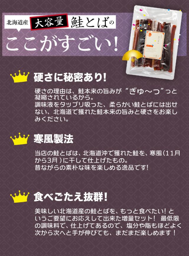 送料無料 珍味 北海道産 鮭とば 約900g(300g×3袋)(熟成 乾燥) / 自宅用 自分用 干物 おつまみ セット ビール さけ サケ しゃけ 鮭トバ とば トバ つまみ おつまみ まとめ買い 一括購入 大量