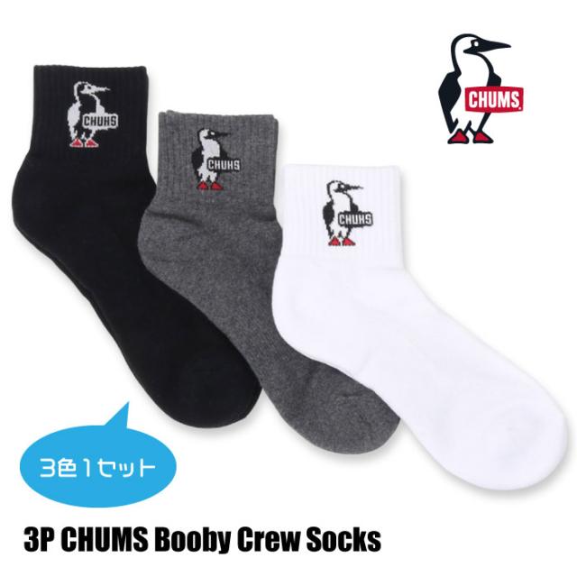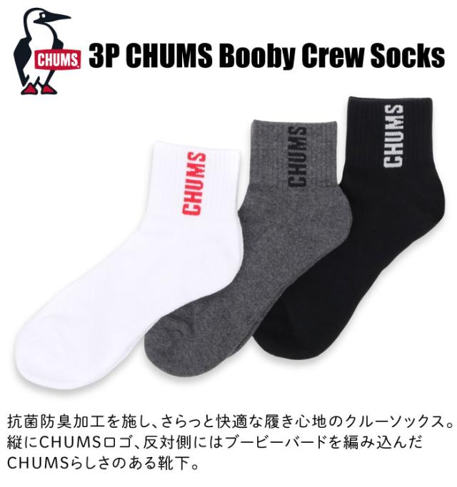 CHUMS チャムス 3P チャムスブービークルーソックス 3足セット ロゴ 靴下 メンズ レディース 抗菌 防臭 快適 プレゼント CH06-1132