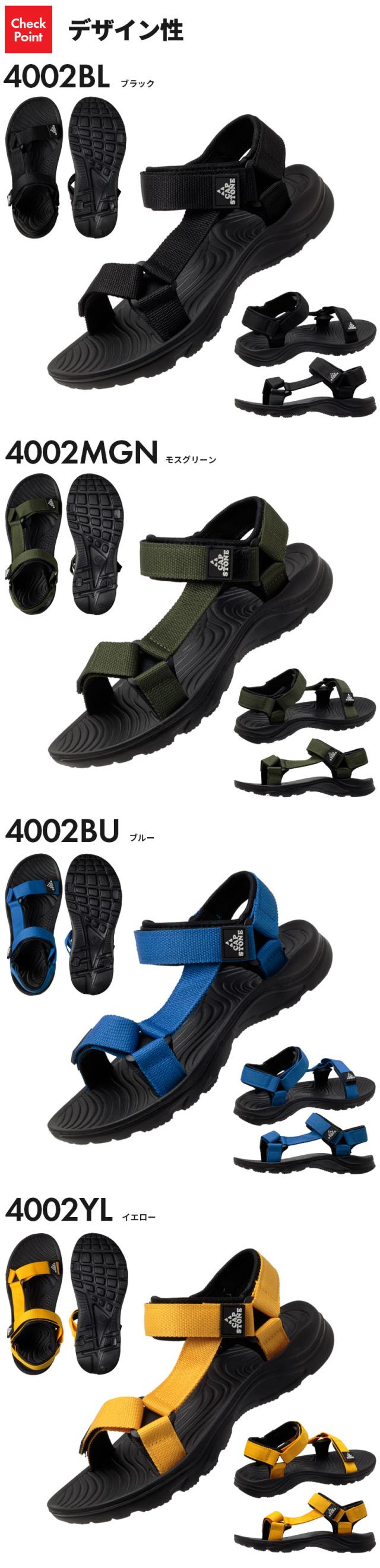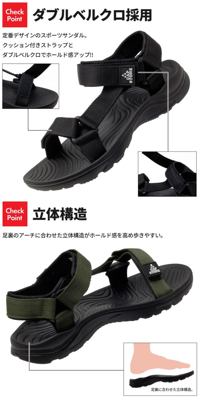 CAP STONE スポーツサンダル メンズ サンダル 歩きやすい 軽い 軽量 ブラック モスグリーン ブルー イエロー 全4色 25.5cm 26cm 26.5cm 27cm 4002