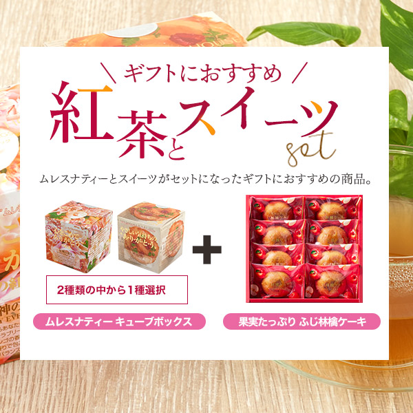 果実たっぷり ふじ林檎ケーキ 8個入り& ムレスナティー キューブボックス 女神の祈り/ 純、白桃