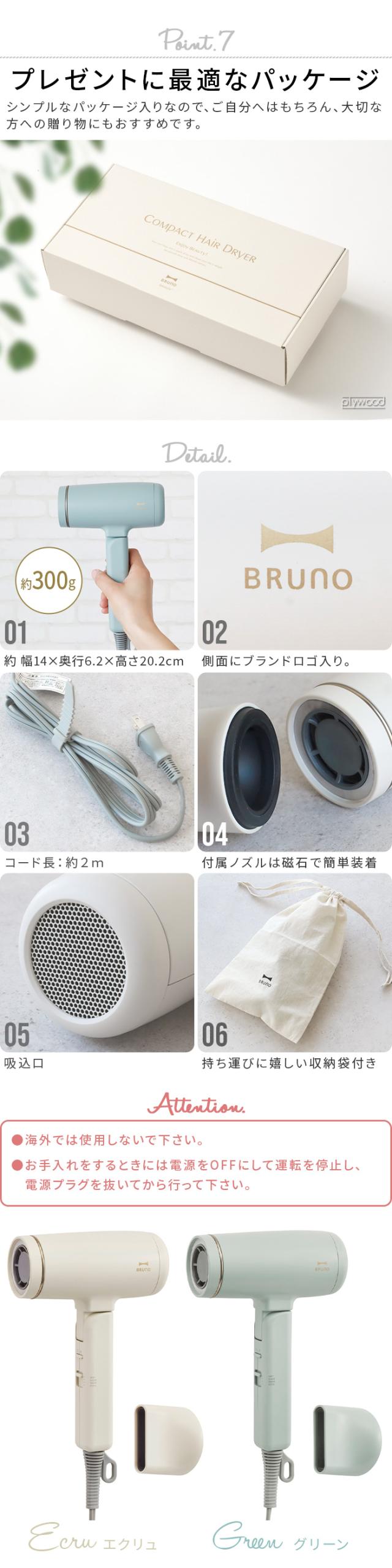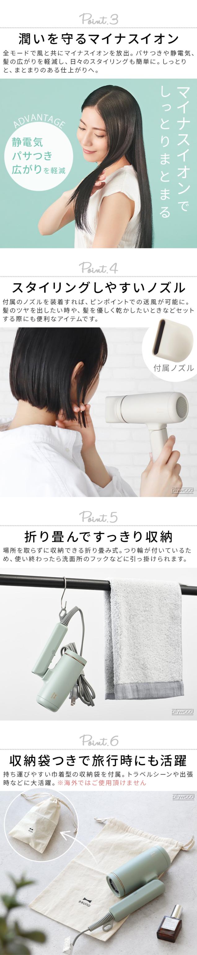 【選べる特典付】ヘアドライヤー 大風量 ドライヤー マイナスイオン 速乾 BRUNO beauty コンパクトヘアドライヤー BOE146 ブルーノ ビューティー 軽量 静音 折り畳み式 ツヤ髪 コンパクト 旅行 おしゃれ コンパクトドライヤー 温度調整 ヘアケア 送料無料 P10倍