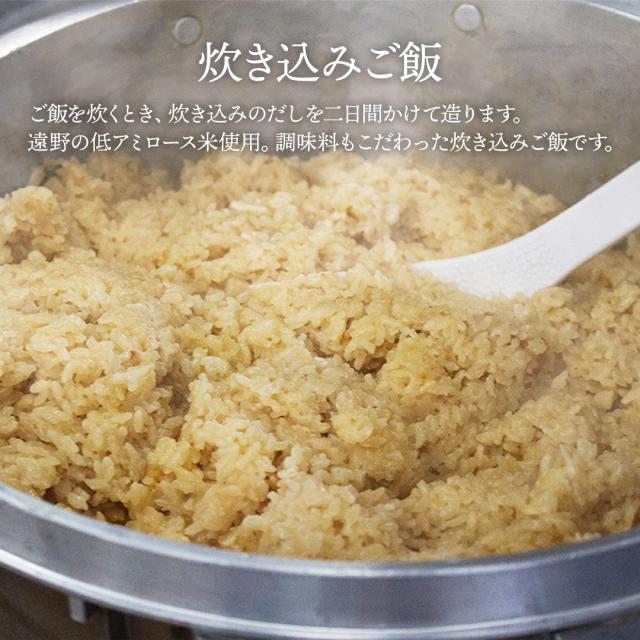 お米は岩手県産の低アミロース米使用。炊き込みのだしを二日間かけて造ります。