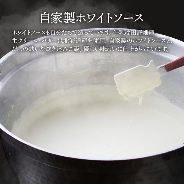 自家製ホワイトソースには、田野畑産の牛乳と北海道産の生クリーム・バターを使用し、優しい味わいに仕上がっています。