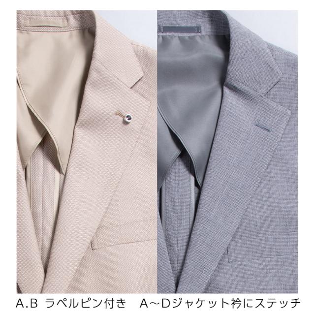 【仕様】背抜き仕様 サイドベンツ 袖口4つボタン 左胸ポケット 左右ポケット 左右内ポケット