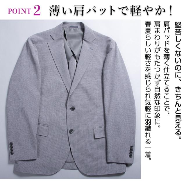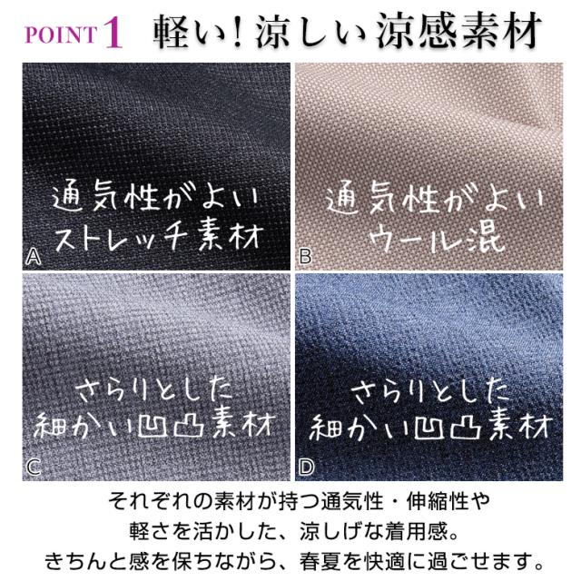 通気性がよく、軽やかな着心地が魅力の春夏素材を使用。