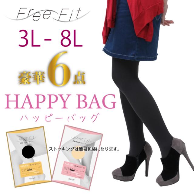 【大きいサイズ福袋】3L-8L ゆったり大きいサイズのFreeFit フリーフィット ハッピーバッグ【数量限定】3L 4L 5L 6L 7L 8L ストッキング・タイツ・レギンス・トレンカ アームカバー など6点セット【レガルト】【レッグスタイル】【legstyle】