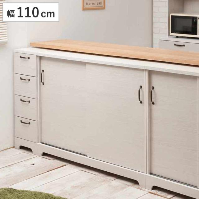 カウンター下収納 引き戸 キャビネット 幅110cm ホワイト木目 ( Late ラテ カウンター下 収納 可動棚 間仕切り 食器棚 ラック 棚 背面化粧 リビング ホワイト 白 )