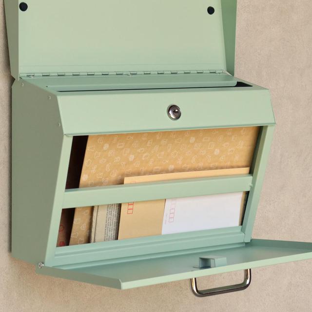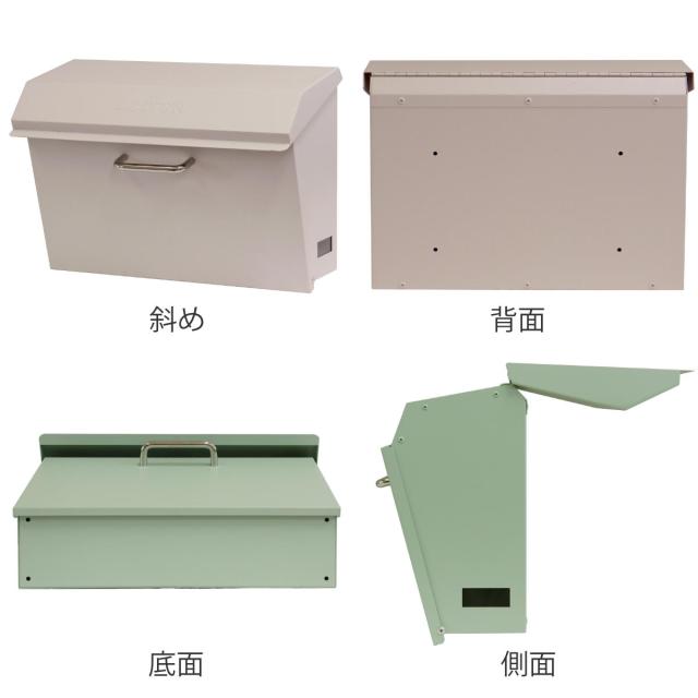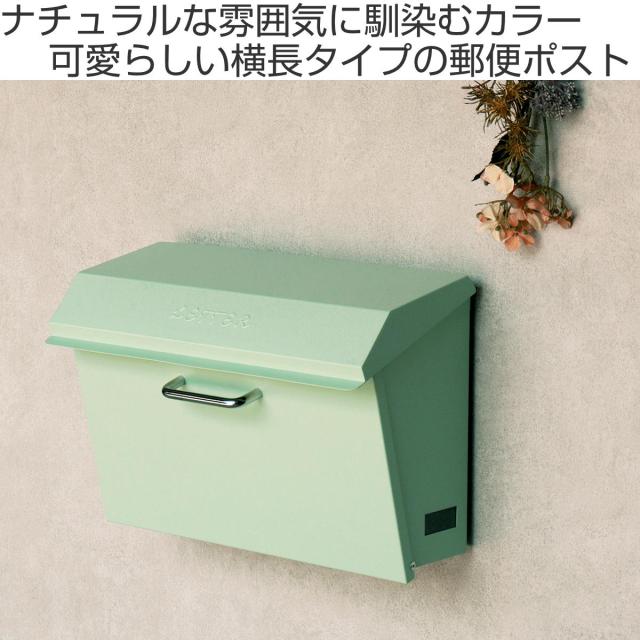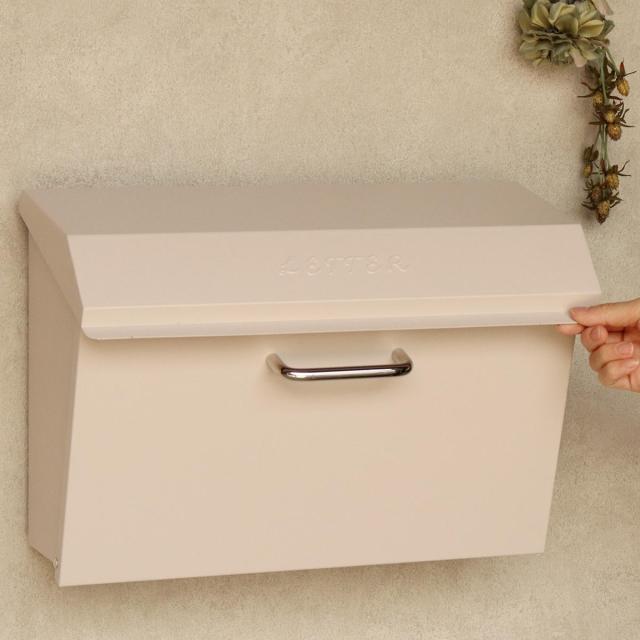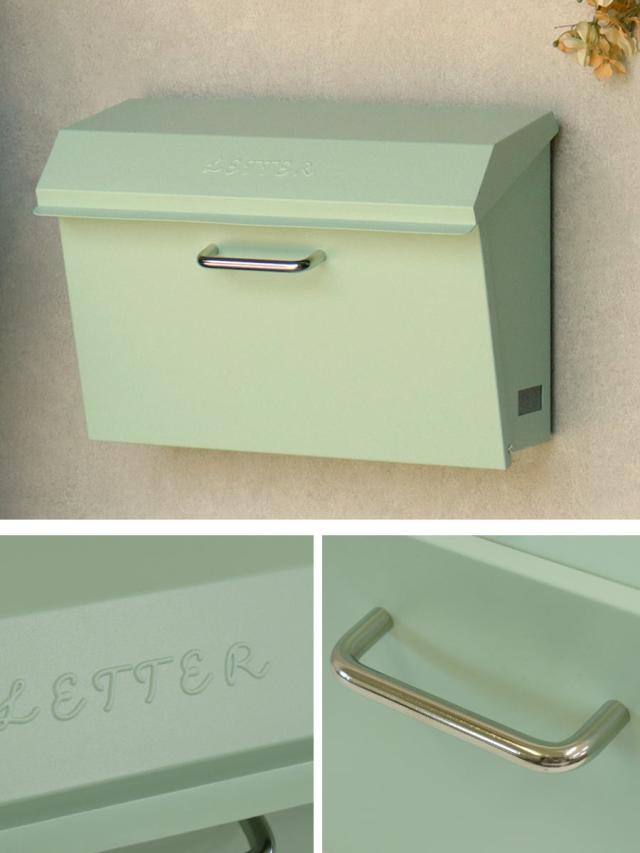 フレンチ風やナチュラルな雰囲気に馴染む横長タイプのポストです。上蓋には「LETTER」のエンボス加工が施されています。明るく爽やかな印象の明るいセージグリーンと外壁に馴染みやすいクリームの2色からお選びいただけます。