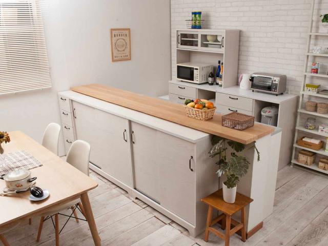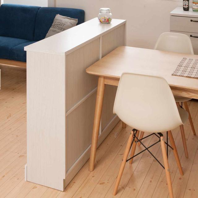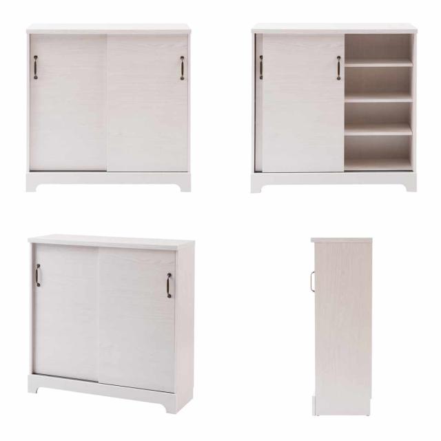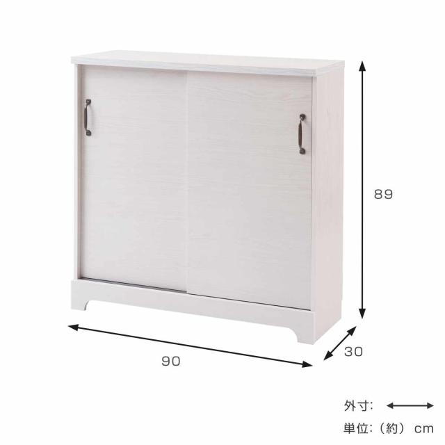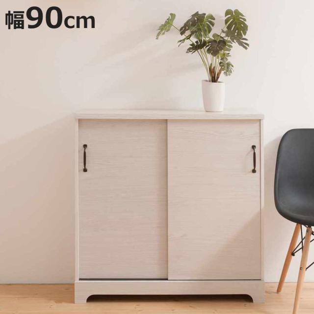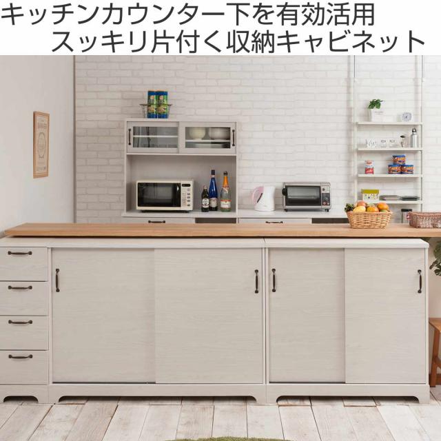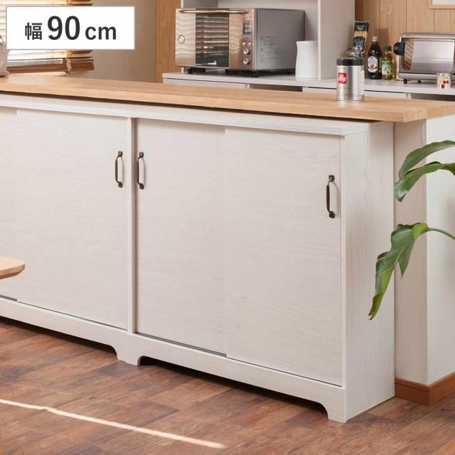 カウンター下収納 引き戸 キャビネット 幅90cm ホワイト木目 ( Late ラテ カウンター下 収納 可動棚 間仕切り 食器棚 ラック 棚 背面化粧 リビング ホワイト 白 )