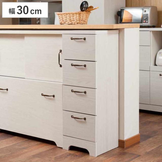 キッチンカウンターの下に置ける収納キャビネットです。デッドスペースになってしまいがちなカウンター下に造り付けのように設置できます。奥行き30cmとスリムでありながら、大容量収納できるので、リビングやキッチン周りの小物をスッキリと隠せます。